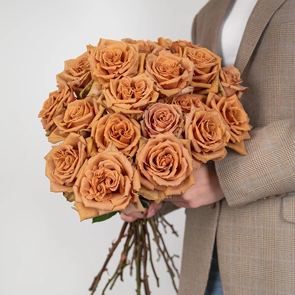 With its warm, caramel-toned petals, Ecuador rose Toffee is a classic brown rose for Mocha Mousse-inspired floral designs. Perfect for weddings and luxury arrangements.